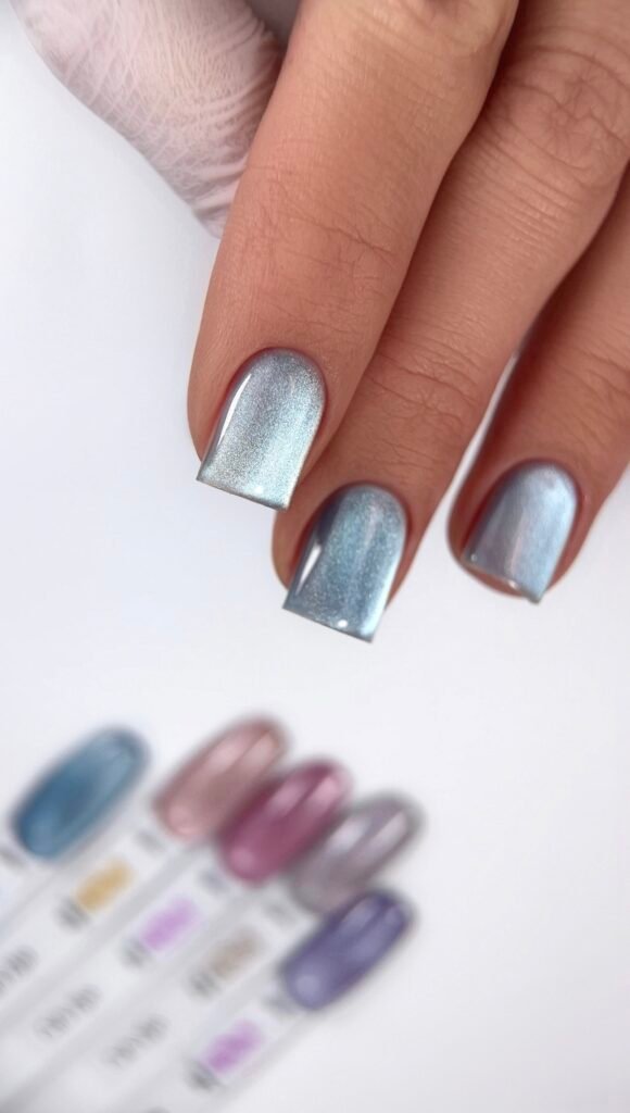 Magnetinis lakas. Vidutinio tirštumo konsistencija ir patogus šepetėlis leidžia laką padengti greitai ir tolygiai. Nebėga į odeles, nesuteikia papildomos apimties.
